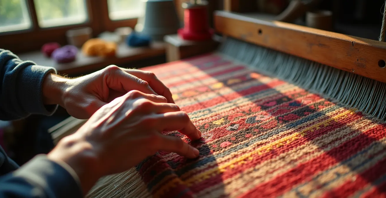 - Les micro-variations de tension : Observez le tissage de près. De légères ondulations ou des irrégularités subtiles ne sont pas des défauts, mais la preuve du travail manuel. Une machine produit une tension parfaitement uniforme, une tisseuse, jamais. C’est la respiration du geste humain.